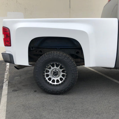 2007-2013 Chevy Silverado bedsides, hand-laid in the USA. Price includes set of two Silverado bedsides (driver and passenger side). Fiberglass Chevy bedsides come standard in semi-gloss white. Fuel area can be added. Bolt-on installation. These Chevrolet Silverado prerunner bedsides are a perfect match with our 2007-2013 Chevrolet Silverado fiberglass fenders to create a build that is ready for any terrain. Purchase these truck bedside replacements today!