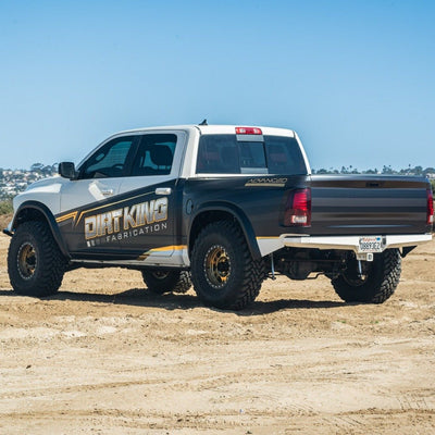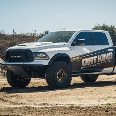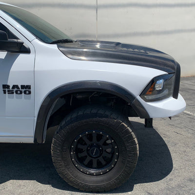 2009-2018 Dodge Ram TRX Kit, hand-laid in the USA. Price includes a hood, a set of two fenders, a set of two bedsides (5.7' or 6.4'), and either a set of two headlight extensions (driver and passenger side) or a valance. The Fenders and Bedsides have a 4" Flare 2" Rise. Fiberglass Dodge Ram kit comes standard in semi-gloss white. Fuel fill area built in. Bolt-on installation. Each Ram fiberglass panel is made specifically for your model and year and designed for a seamless transition between the factory panels and our aftermarket body panels. See also our Dodge fiberglass parts for older models.