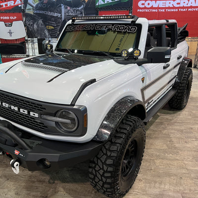Our 2021-2025Ford Bronco Sasquatch fender flares are handcrafted right here in America to ensure the kind of quality, durability, and craftsmanship you’ve come to expect from Advanced Fiberglass Concepts. Each Ford Bronco forged carbon fender flare is made specifically for your model and year and designed for a seamless transition between the factory panels and our aftermarket body panels. These Bronco Sasquatch flares are a perfect match for our 2021+ Ford Bronco Heat Extractor Hood and 2021+ Ford Bronco Ram Air Hood.