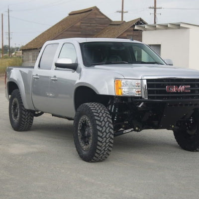 2007-2013 GMC Sierra fender flares, hand-laid in the USA. Price includes set of two fenders (driver and passenger side). Fiberglass fenders come standard in semi-gloss white. Bolt-on installation. These Sierra prerunner fenders are a perfect match with our 2007-2013 Sierra bedsides to create a build that is ready for any terrain.