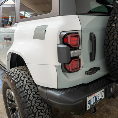 Our aftermarket rear quarter kit for 2022-2025 Ford Bronco Raptors is handcrafted right here in America to ensure the kind of quality, durability, and craftsmanship you’ve come to expect from Advanced Fiberglass Concepts. Each Ford Bronco flare is designed specifically for a seamless transition between the factory panels and our aftermarket body panels. These Bronco rear quarter panels are a perfect match with our 2022-2025 Bronco Raptor Flared Fenders to create a build that is ready for any terrain.