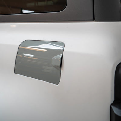 Step 4: Apply double sided tape the both the backside of the door caps and rear bumper trim. Press and hold the door caps and rear bumper trims in position against the vehicle.